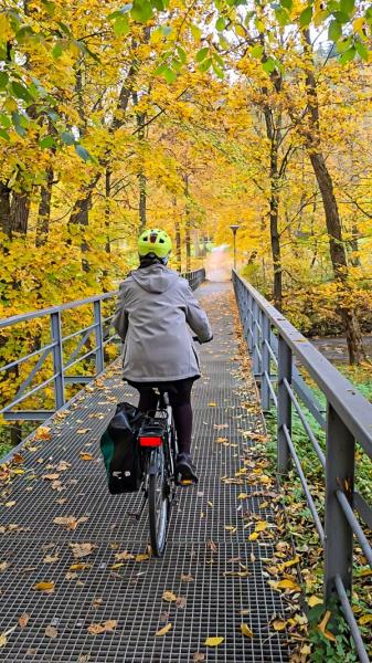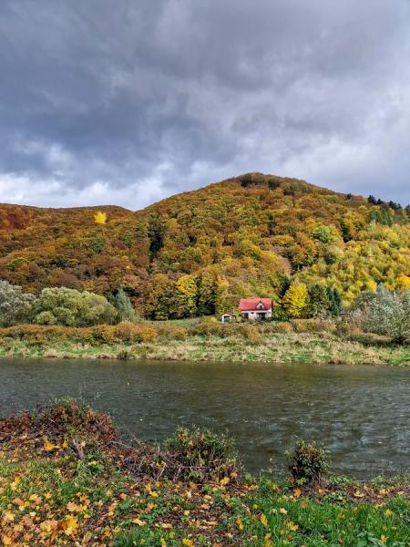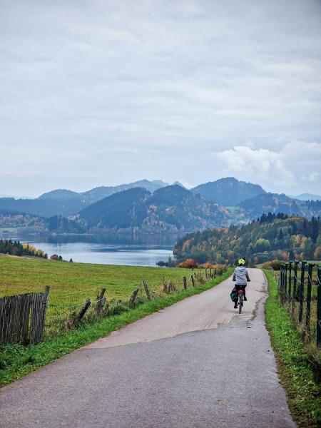 After the flat bike path, we made a stop on lake Czorsztyn (Stausee). Then came the toughest climb of the day. On the top were some happy geese and many cows. It was then going down that the best scenery of the day came in front of my eyes. The orange and yellow mountain range with the lake greeted us. We made another stop but this time for lunch since it started to rain. After a pirogi lunch it was off to the border to cross into Slovakia. One side of the river is Poland and the other side Slovakia. It was so peaceful to go through the canyons of the Pieninski national park. We saw many people who were hiking or biking. We got to Szczawnica at dusk. The town is full of life and is bigger than I expected. I counted over 5 bridges and took a wrong turn a few times, thinking that we were there already but we had some more bridges to go. Our hotel Nawigator Kat. B is on a hill, and it is also nice. After resting a bit, we went into the town to find some sweets and locally made cheese and returned to our hotel.
