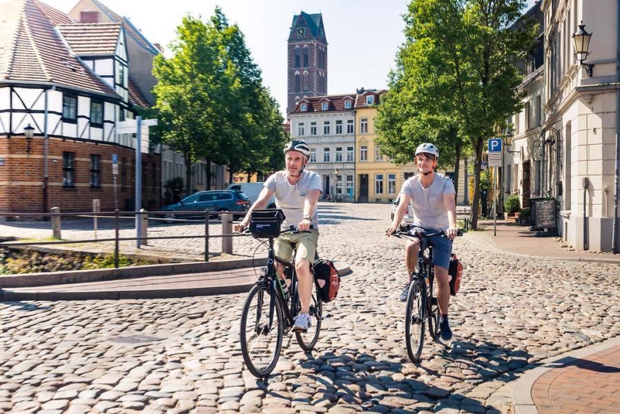 You leave Lübeck for Travemünde by train (on your own, -20 km) or bike. You take the ferry to Priwall on your own and cycle to the Baltic resort of Boltenhagen. The journey continues to Wismar Bay in the old Hanseatic city.
