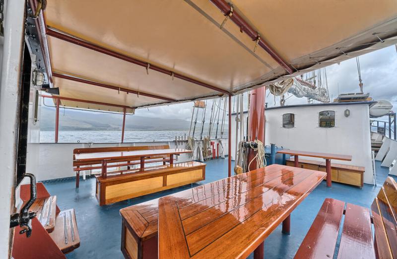 Thanks to her extensive safety and navigation technique, the Flying Dutchman has the world-wide permit to carry out sailing tours. With a sail surface of 480 m² it is usually possible to cover the stretches between islands under sail, and Captain Klaas appreciates any assistance offered by his guests.