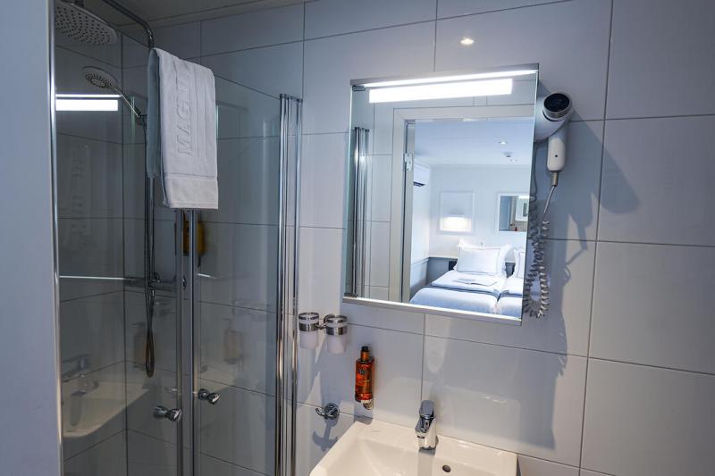 All 17 cabins are equipped with private facilities, individually controlled air conditioning, flat screen, a small safe and a hairdryer.
