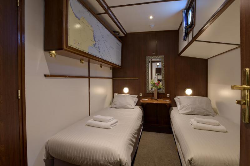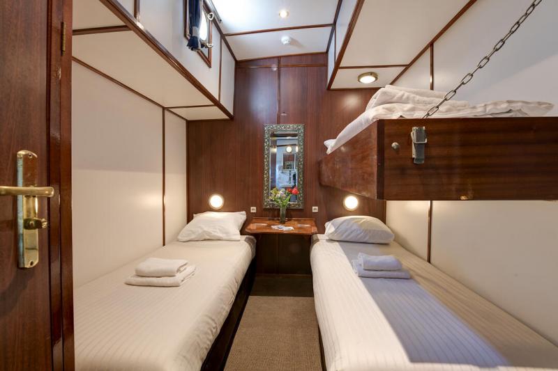 All cabins have shower/toilet and a ventilation system, the 2-bed cabins are equipped with an additional pullman bed/folding bed for a 3rd person.