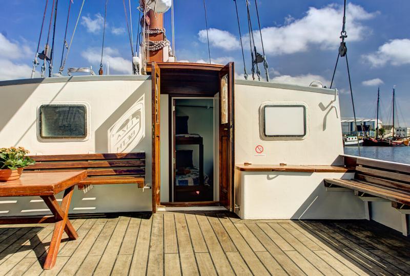 The impressive clipper built in 1913 boasts a plush interior design. During the painstaking renovation to become a modern passenger sailing vessel great attention was paid to retaining the original features of the characteristic Dutch flat bottom boat. Roomy cabins with ensuite shower and lavatory, a large salon with bar and a snug seating area ensure your stay will be comfortable.