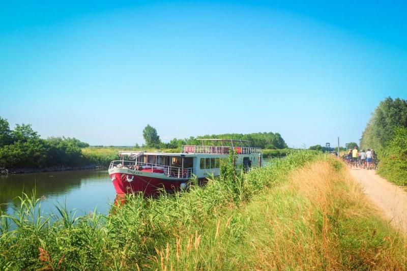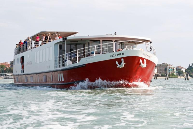 The Ave Maria Italia is a comfortable river cruise ship made in Italy, built using innovative designs and featuring materials selected with aesthetics and comfort in mind. It is also a small vessel capable of navigating under low bridges and through shallow waters, as is typical of Italian waterways. The ship was custom-built from the hull of a dredger on the River Po. All of this was done in strict compliance with new and stricter safety and environmental protection standards. The Ave Maria Italia is an environmentally sustainable ship, as energy is conserved on board, wastewater is treated, and navigation causes no damage to the banks.