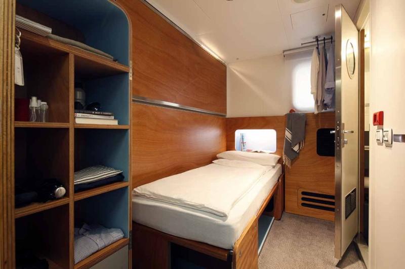 All cabins feature comfortable low beds, a bathroom/toilet (including a hairdryer and shower set with soap, shower cap, and shampoo), large windows, individually adjustable air conditioning, a locker, and ample storage space under the beds for suitcases.