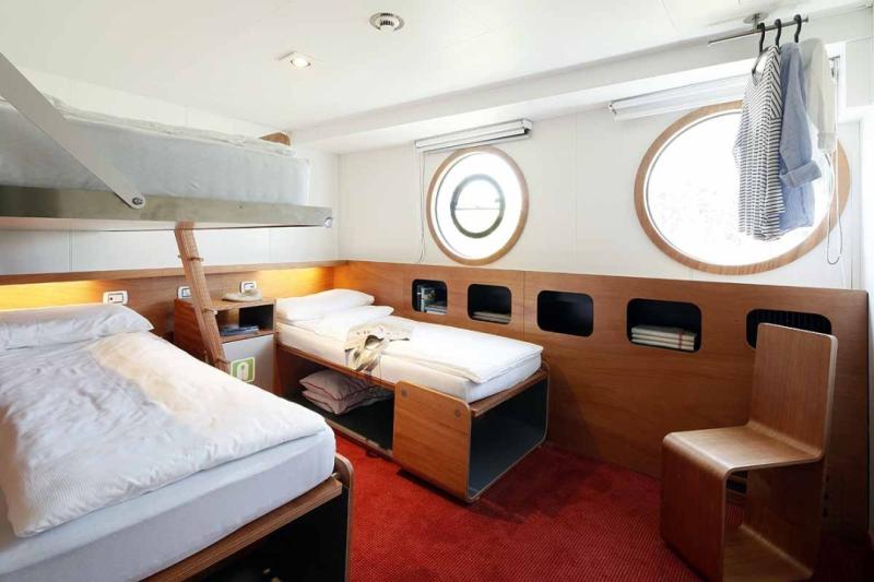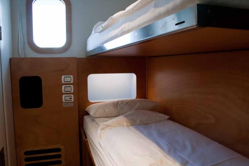 All cabins feature comfortable low beds, a bathroom/toilet (including a heated towel rack, hairdryer, and shower set with soap, shower cap, and shampoo), large windows, individually adjustable air conditioning, a locker, and ample storage space under the beds for suitcases.